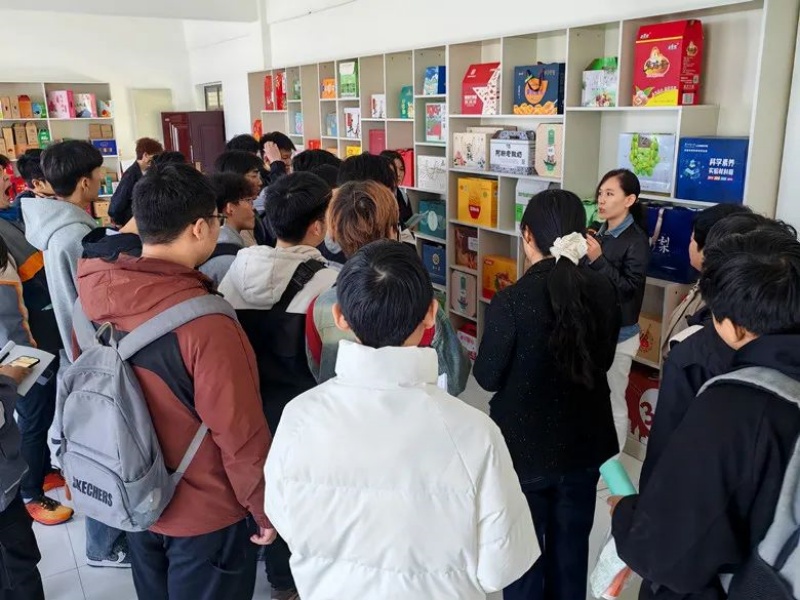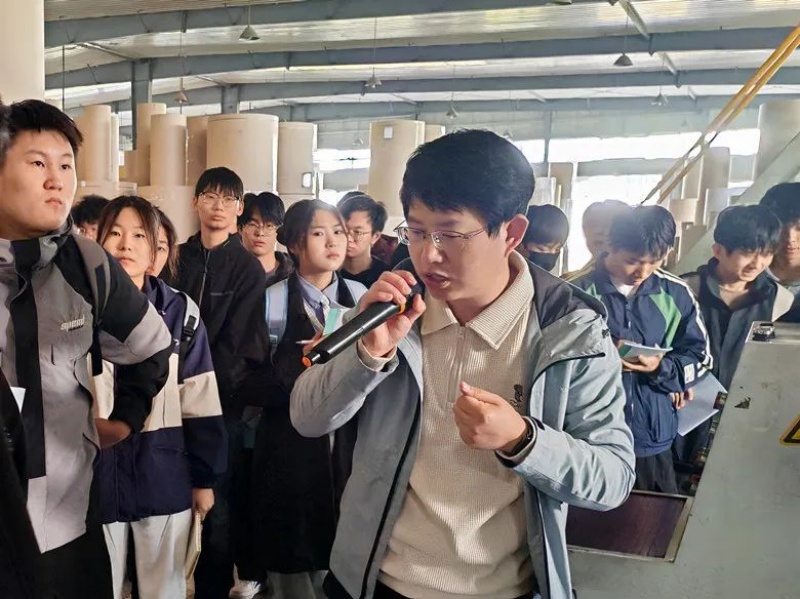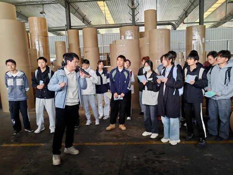 賀總向大家詳細介紹了膠印基礎知識、彩盒制作過程、紙板生產(chǎn)工序、紙箱工藝流程等紙類包裝制造的基本知識,對于第一次來到包裝企業(yè)的學生們而言,“零距離”接觸各類包裝設備,觀察不同設備的運行特點,能夠見到琳瑯滿目不同類型的禮盒包裝,這些都讓大家既新鮮又興奮,參觀過程中,學生們邊聽邊記,專注認真。